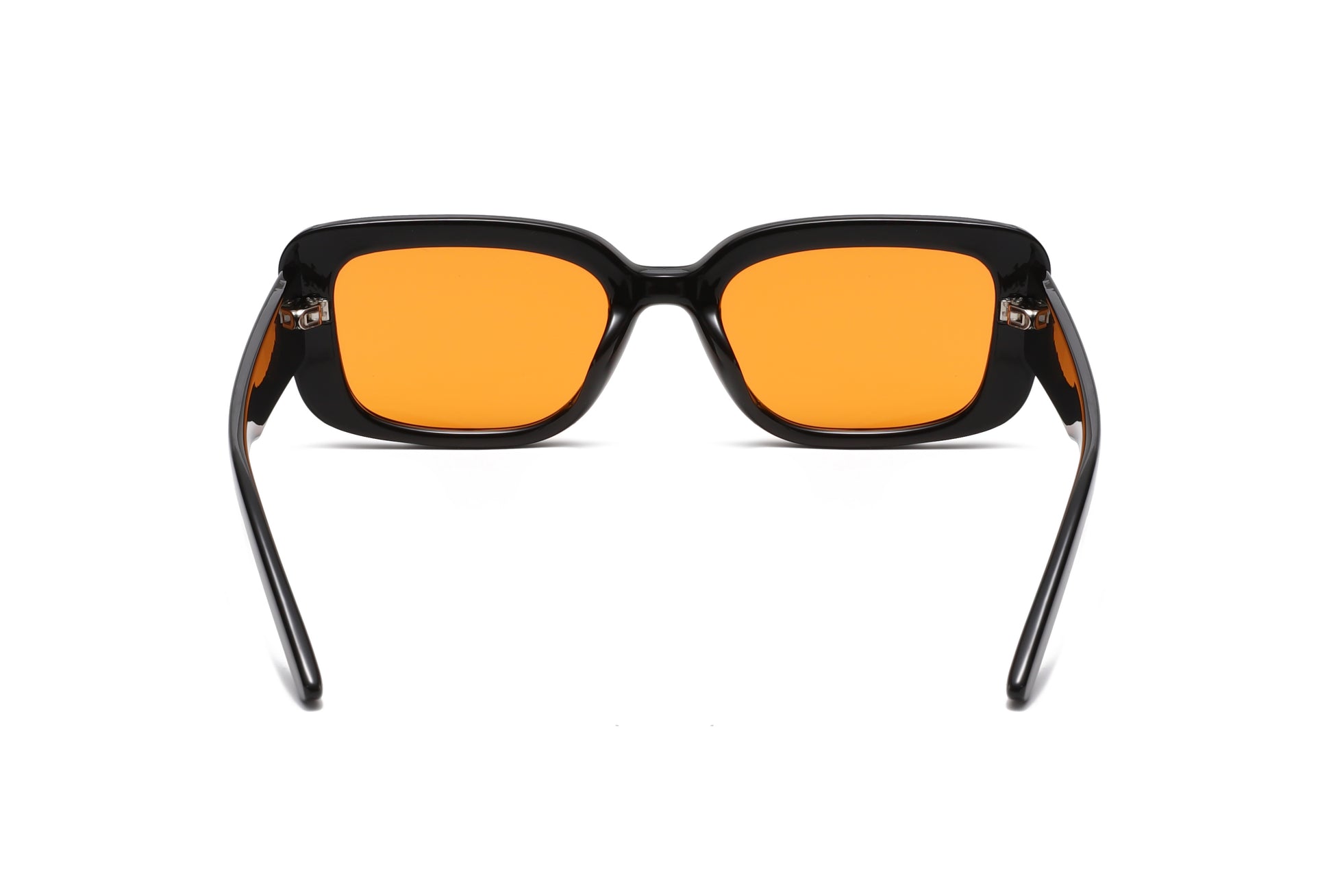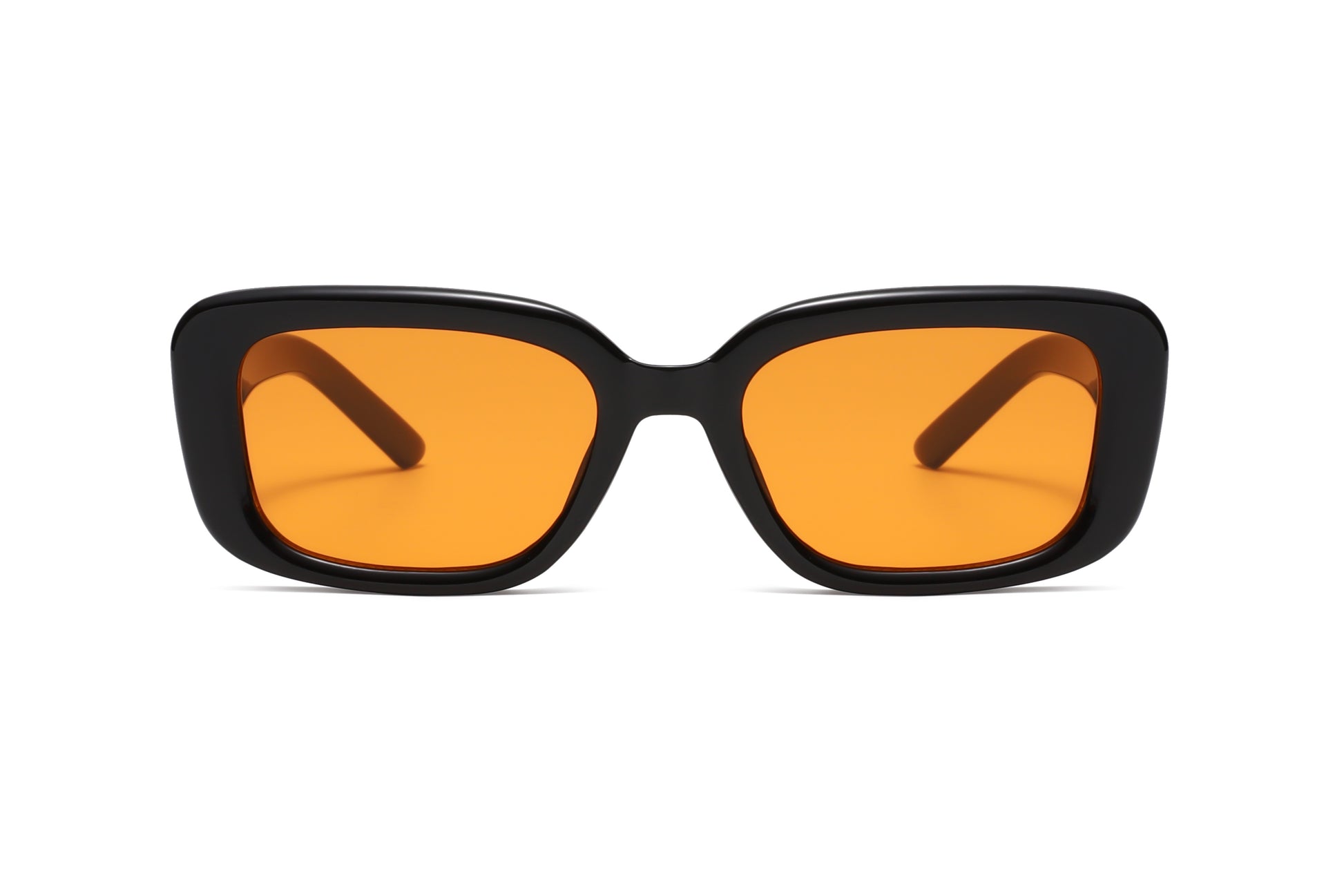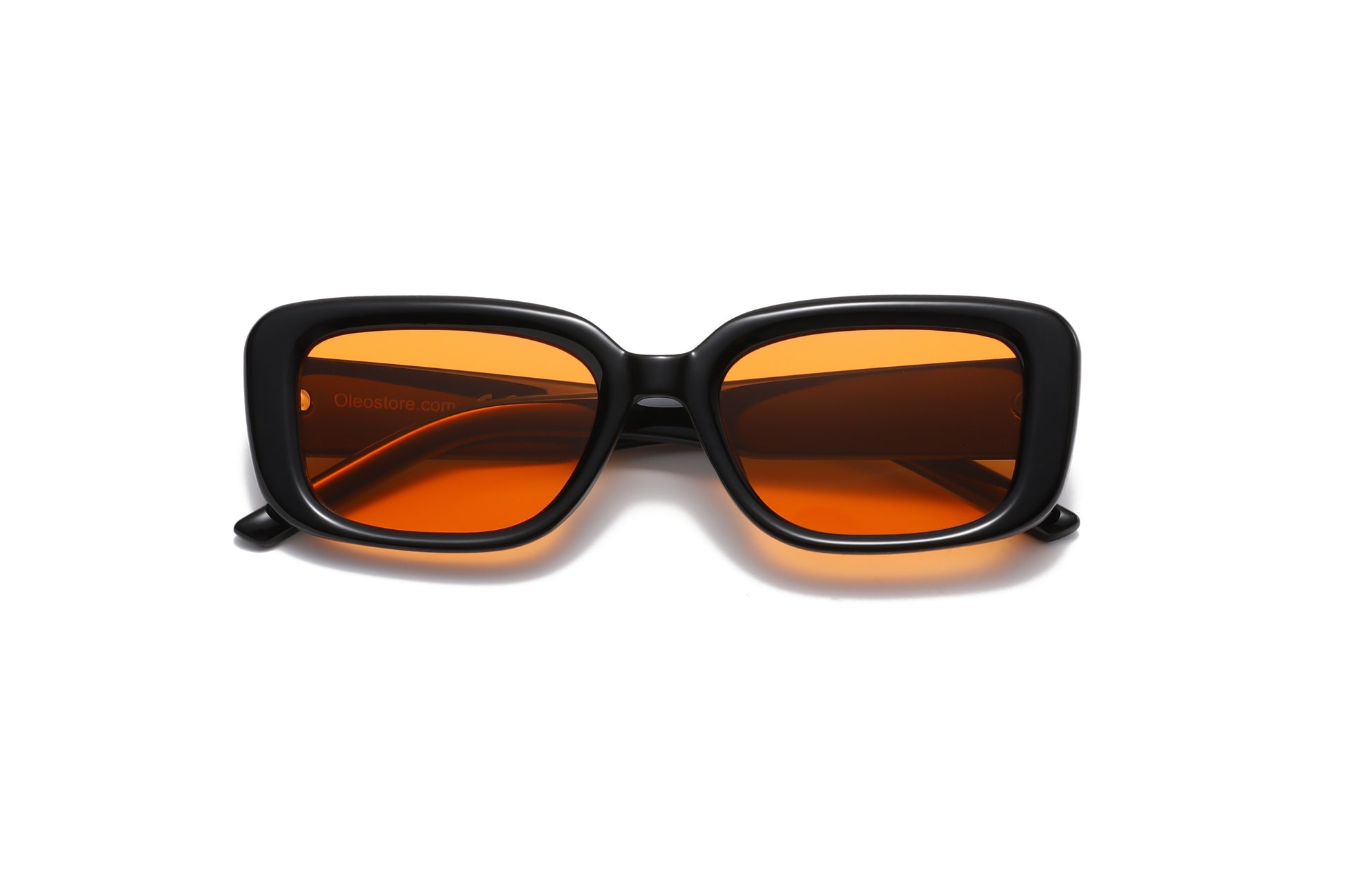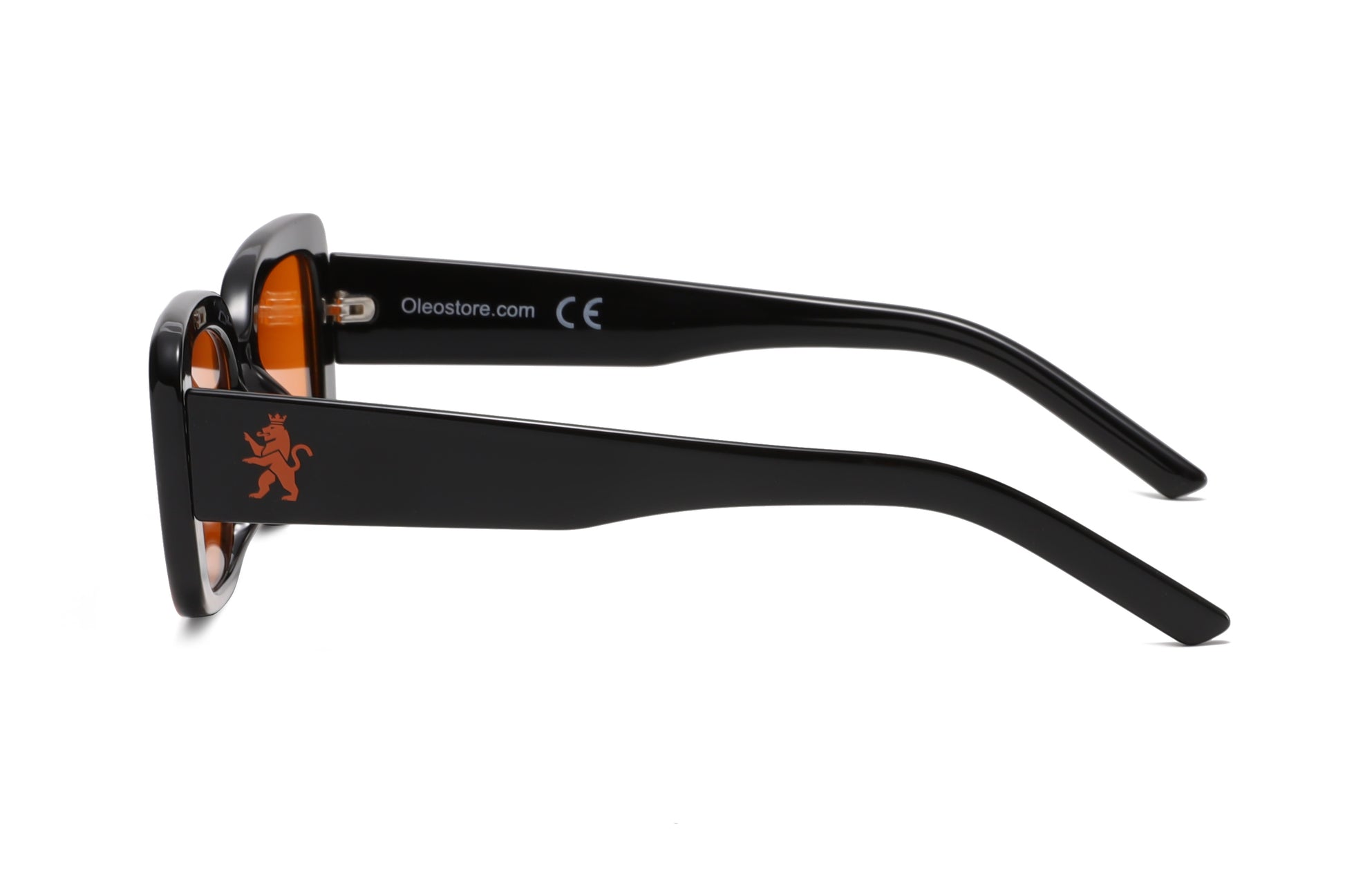 Maak kennis met de zonnebril die durf en stijl perfect combineert: de zwarte zonnebril van O.Leo. Met zijn opvallende transparante oranje montuur en donkere glazen is dit dé eyecatcher voor zonnige dagen.
