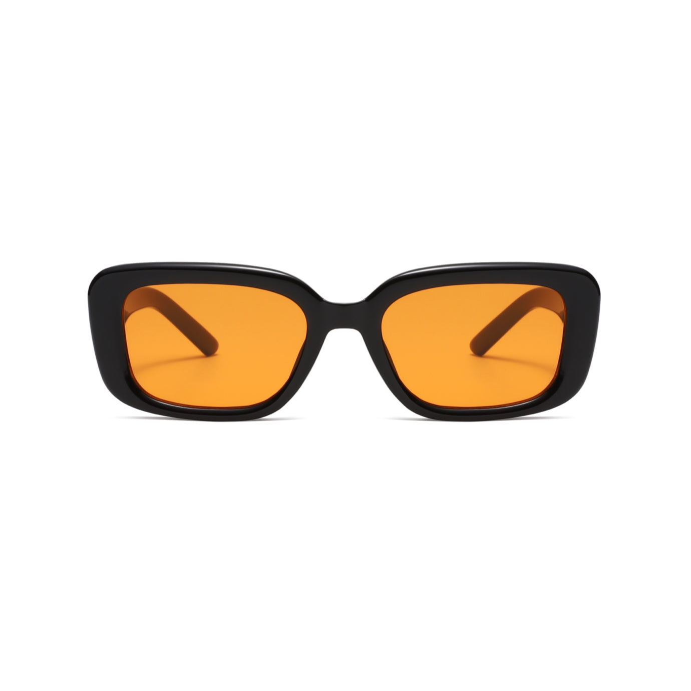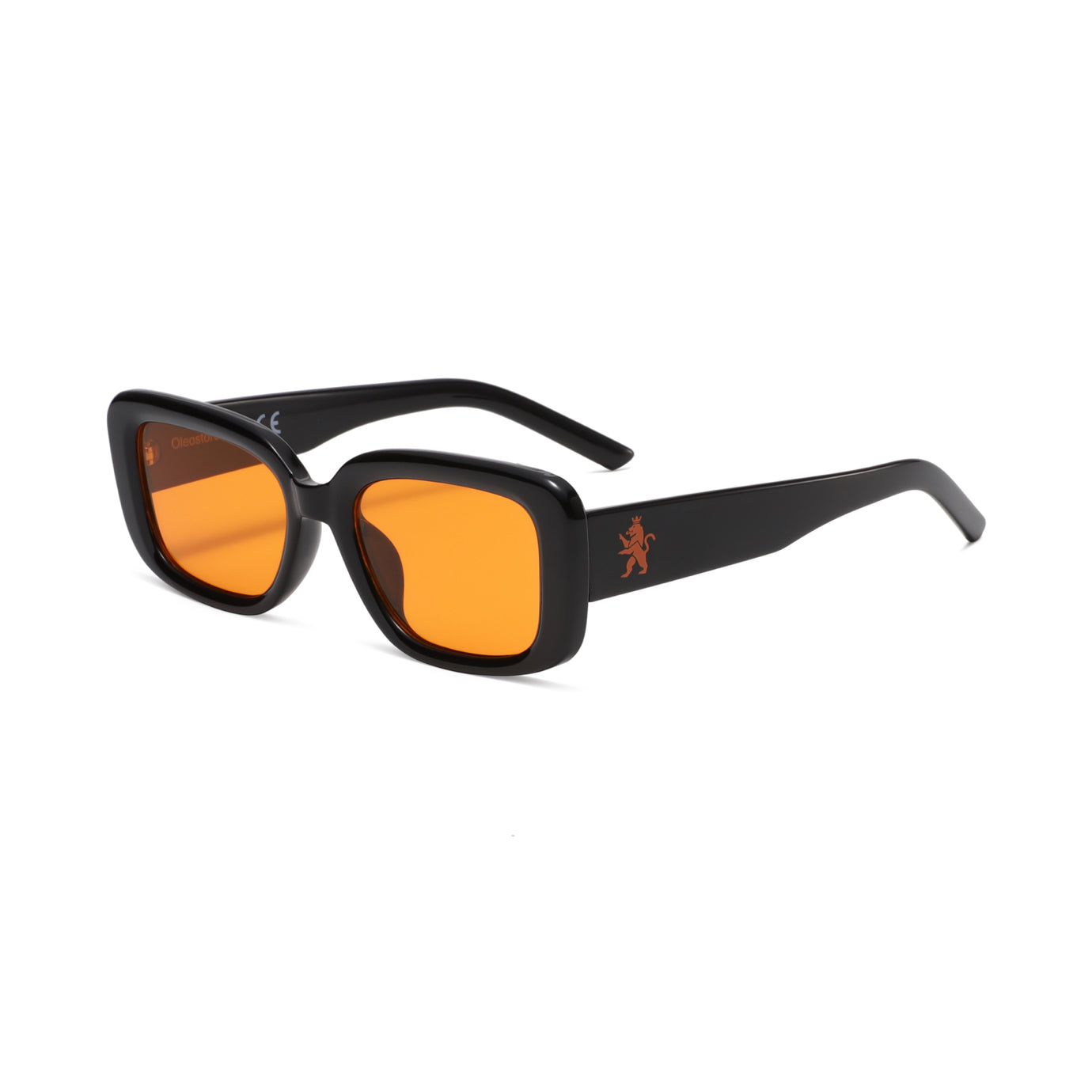 Maak kennis met de zonnebril die durf en stijl perfect combineert: de zwarte zonnebril van O.Leo. Met zijn opvallende transparante oranje montuur en donkere glazen is dit dé eyecatcher voor zonnige dagen.